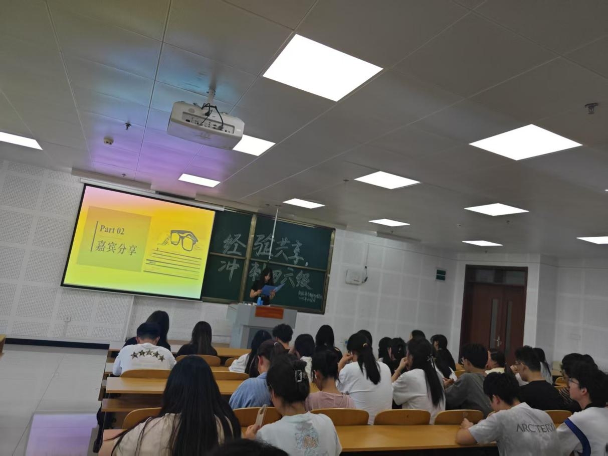 活动邀请三名英语四级成绩优异的优秀学生代表进行分享。化学2303班杨馨雅,聚焦词汇积累,推荐同学们将易混淆词、高频考点词整理成小条目,在课间、睡前等碎片时间,随时拿出来翻看,搭配真题例句理解用法,让词汇记忆又快又牢。材料科学与工程2401班张玲瑄分享听力技巧,她建议每天固定时段听真题练听力,第一遍盲听把握整体内容,第二遍精听逐句捕捉细节,同时跟读模仿语音语调,既能提升听力,还能为口语打基础,她还教大家通过预判题目、标记关键信息,精准抓取听力答案。化学2301班宋姿君则深入剖析阅读与写作,她推荐阅读时使用“题干定位法”,看题目找关键词,回原文锁定答题区间,通过梳理文章逻辑结构,辅助快速理解;写作方面,她总结了不同题型的万能模板框架,强调要结合真题练习,不断打磨语言表达。互动答疑环节,同学们围绕备考节奏、难题突破等积极提问,三位同学结合自身经历耐心解答,现场氛围热烈,大家在交流中相互借鉴、传递学习热情。